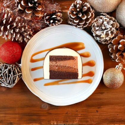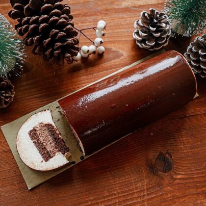 Une bûche gourmande alliant la douceur des abricots à la richesse onctueuse du nougat, pour un dessert festif et raffiné.