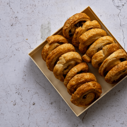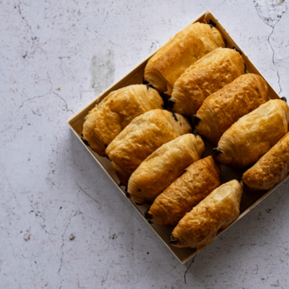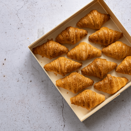 Offrez un assortiment gourmand de mini-viennoiseries — croissants, pains au chocolat et pains aux raisins — pour un petit-déjeuner varié et convivial.