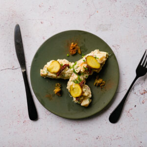 Saumon mariné aux saveurs d’agrumes et d’épices douces, relevé par la pointe piquante d’un labné au raifort : une entrée élégante et pleine de finesse.