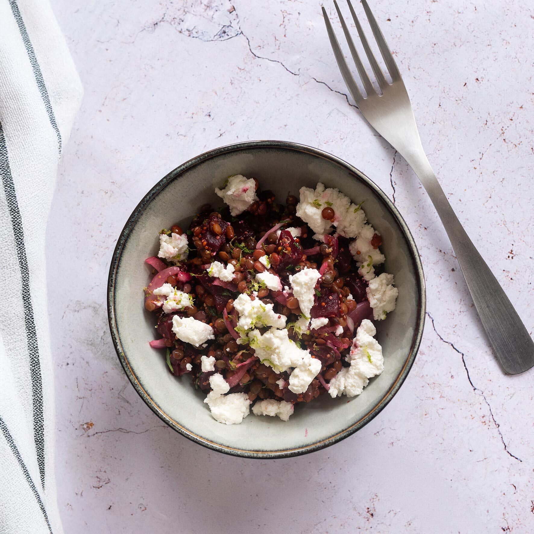 Ingrédients : Chèvre, Bettterave, Persil, Moutarde à l'ancienne, Miel, Lentilles