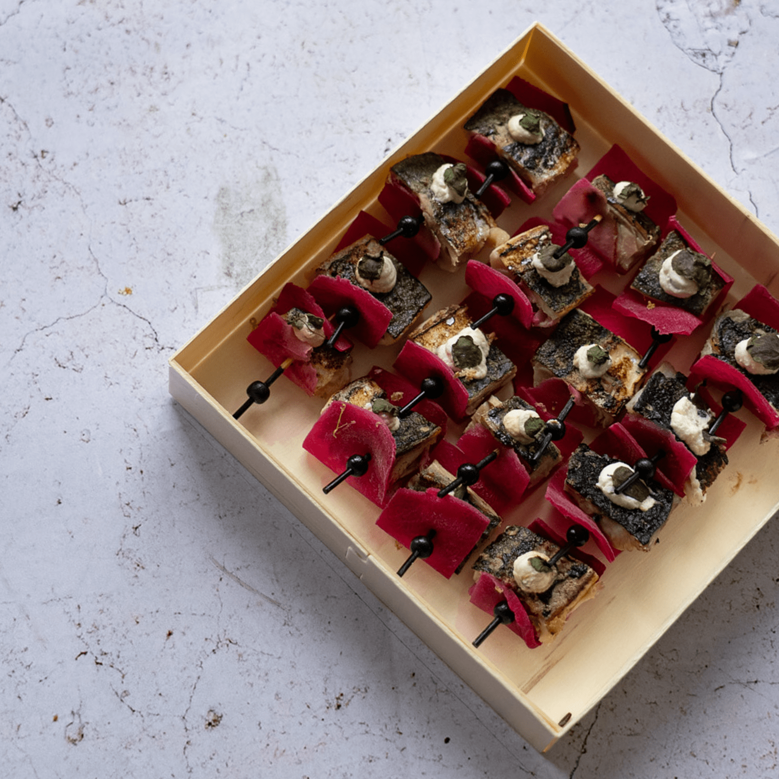 Accueil / La carte Instant Lunch / Cocktails & réceptions / Buffet à la carte / Maquereau & betterave