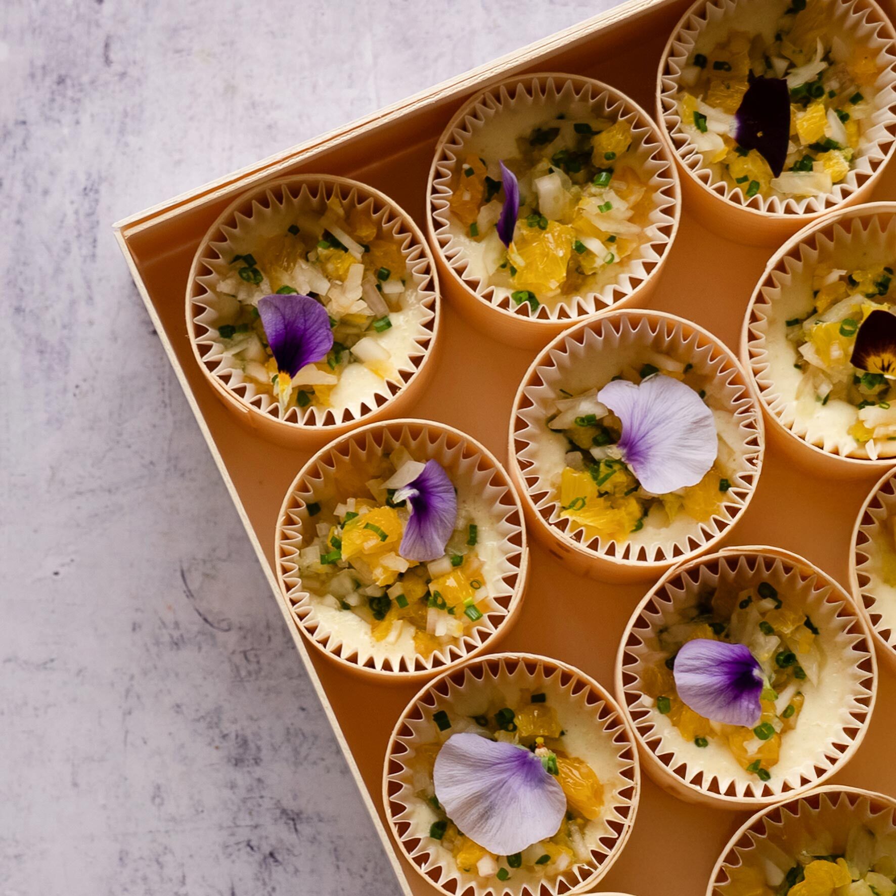 Accueil / La carte Instant Lunch / Cocktails & réceptions / Buffet à la carte / Mini timbaline panna cotta fenouil & brunoise (froid)
