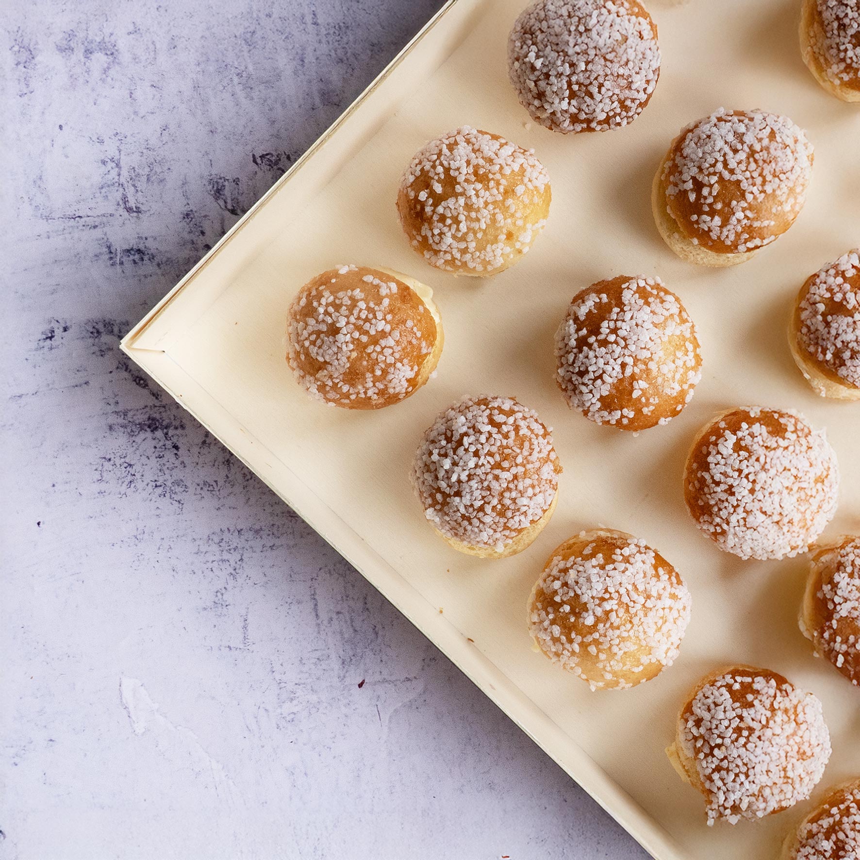 La taille de nos mini-tropéziennes est pensée pour vous offrir la juste dose de gourmandise. Parfaites pour être partagées lors d’un buffet ou d’une réception, elles invitent à la découverte et à la dégustation collective. Chaque bouchée est une invitation au voyage sur la Côte d’Azur, une petite escapade gourmande sans quitter la salle de réunion ou le bureau.