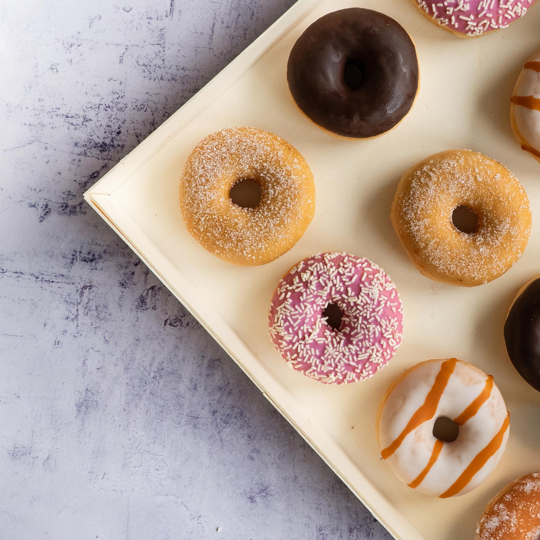 Chaque mini-donut est une œuvre d’art, orné avec soin de vermicelles colorés, de pépites de chocolat ou de swirls de caramel. La taille de ces bouchées est idéale pour les grignoter sans culpabilité, permettant de goûter à plusieurs saveurs sans excès.