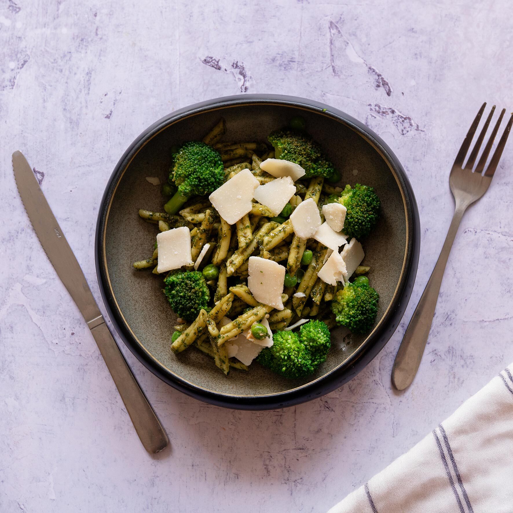 Ingrédients : Parmesan, Basilic, Ail, Brocoli, Petits pois, Trofie de cecco, Huile d'olive