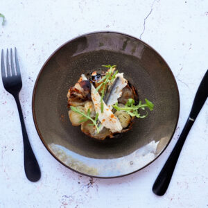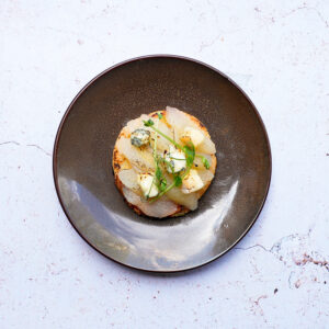 Saumon mariné aux saveurs d’agrumes et d’épices douces, relevé par la pointe piquante d’un labné au raifort : une entrée élégante et pleine de finesse.