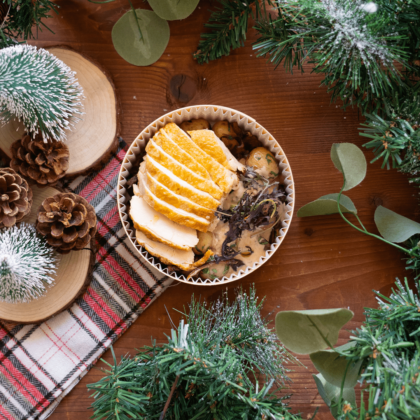 Volaille, pomme de terre & pleurottes sauce morille de Noël